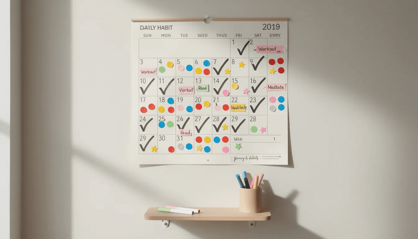Track progress visibly. A wall calendar with daily ticks from 1 March to 31 March 2026 creates momentum you can see. This simple practice supports mental wellbeing by providing a sense of achievement.